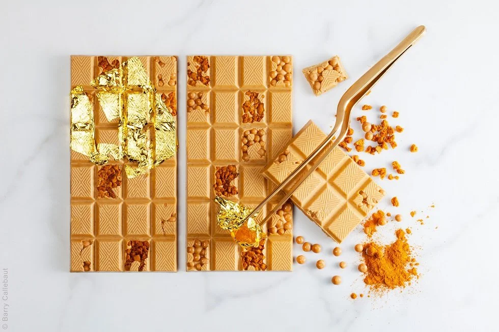 Notes of caramel toffee, butter, cream, and a slight saltiness. Caramelizing the white chocolate lends a pale amber color and imparts new flavors heretofore unknown with the average chocolate selection.